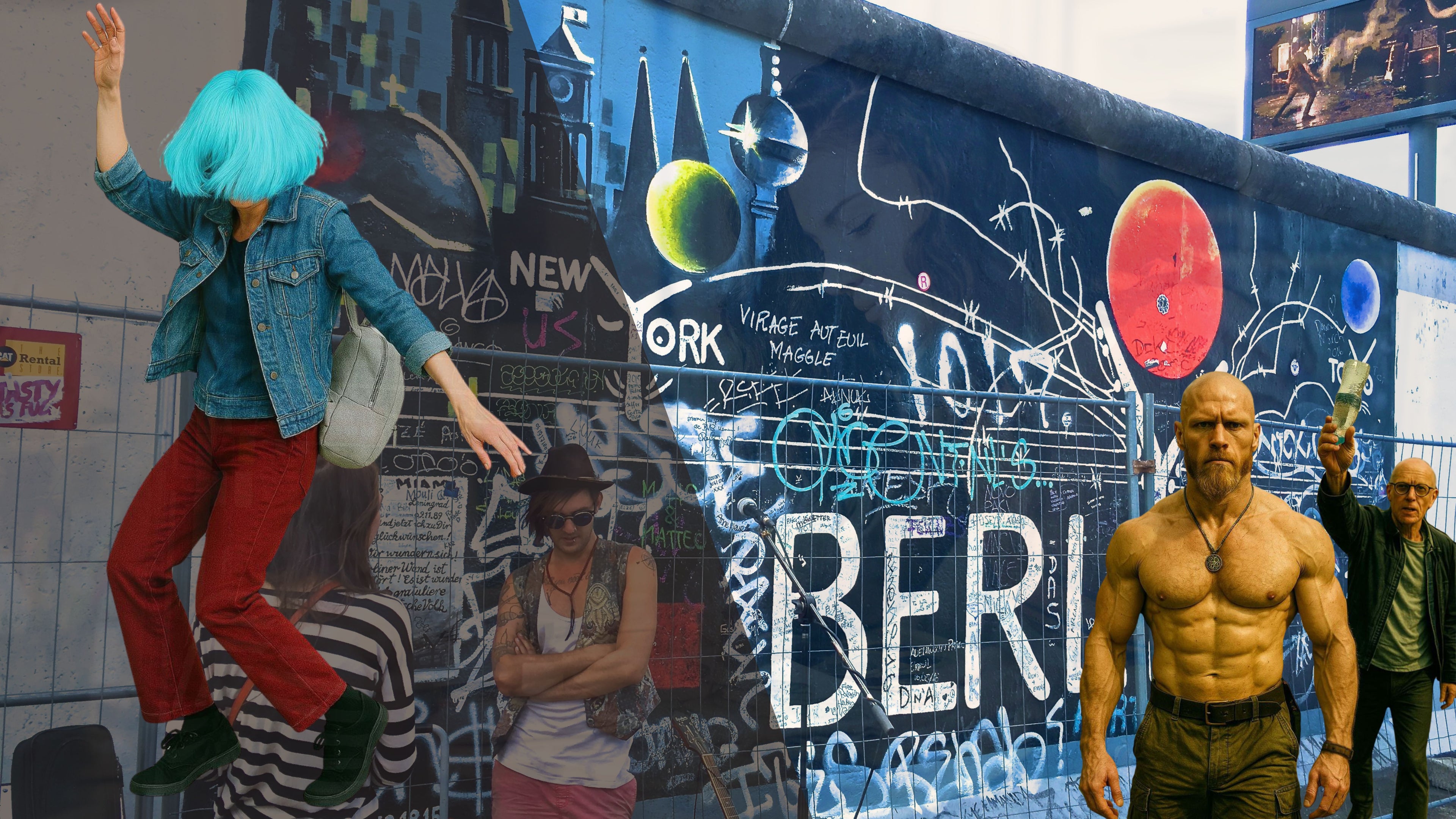 In dieser Dramaturgie ist die Frau mit der blauen Perücke viel mehr als nur ein Nebencharakter. Sie ist der Trigger, das narrative Sprungbrett, das den Helden aus dem Schatten ruft. Ohne ihren impulsiven, lebendigen Tanz und die darauf folgende kleine Kollision gäbe es keine Heldengeste, kein Meme, keinen Kult. Sie steht für die rohe Lebendigkeit der Technoszene – unberechenbar, frei, und doch Teil eines größeren, fast filmisch wirkenden Moments, der durch Zufall und Kamera zu einem digitalen Mythos wurde.